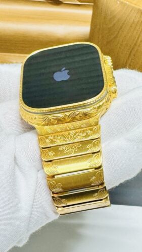 - Custom 24k Gold Plated Apple Watch ULTRA 2 49mm Engraved 24k Gold Link Band