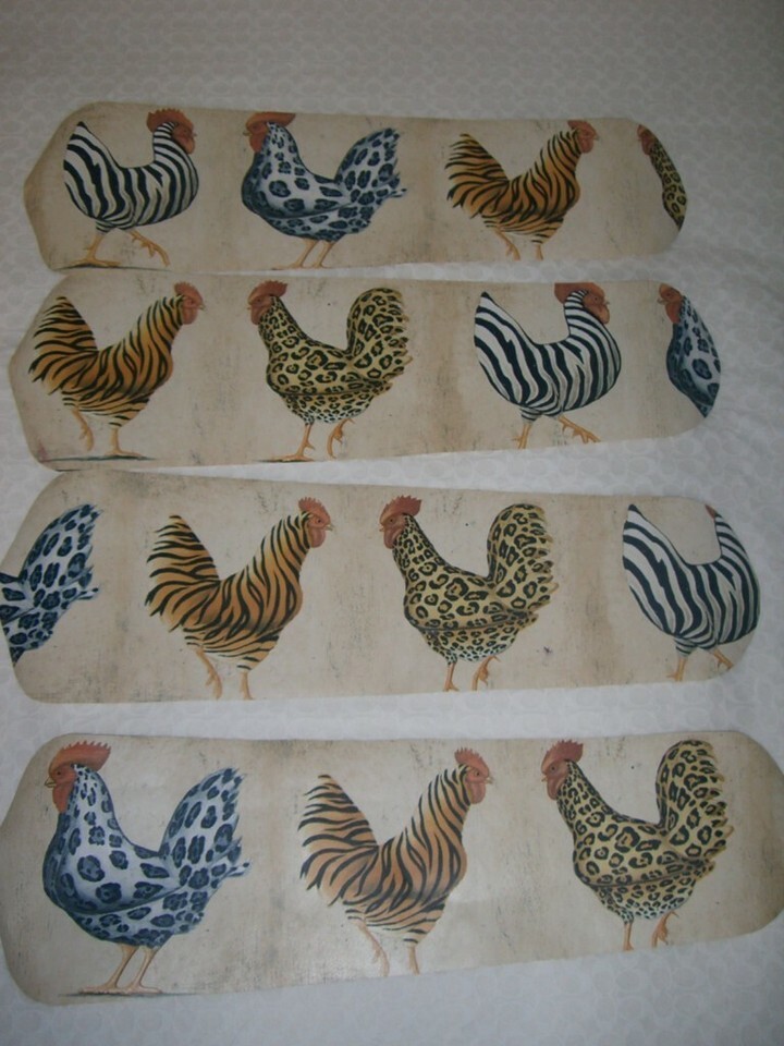 - CUSTOM ~ JUNGLE ROOSTER CEILING FAN ~ LEOPARD ZEBRA TIGER CHEETAH