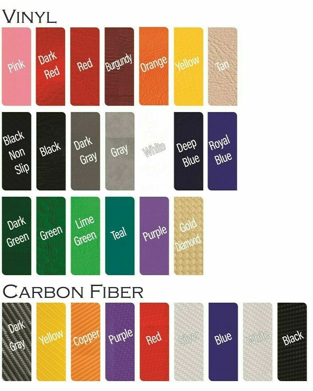 Pink, Dark Red, Red, Burgandy, Orange, Yellow, Tan, Non Slip Black, Black, Dark Gray, Gray, White, Deep Blue, Royal Blue, Dark Green, Green, Lime Green, Teal, Purple, Gold Diamond