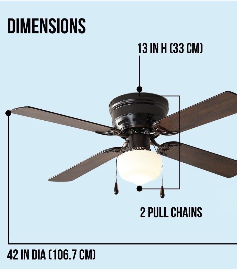 Your bid is for a brand new in the box 42" BLACK flush mount ceiling fan with single schoolhouse style light fixture attached.