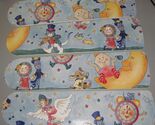 Only the blades have been removed to be handcrafted with adorable Hey Diddle Diddle Nursery Rhyme Graphics. Bright graphics have been applied to blades which are then sealed with high gloss polyacrylic to protect the finish. Graphics are randomly placed making each fan unique.