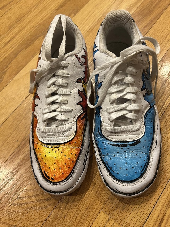 Custom Painted Nike Sneakers - Flame & Wave Design Size 9