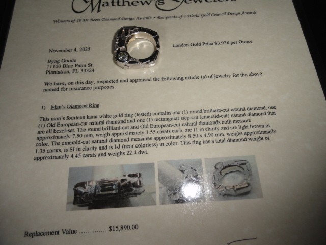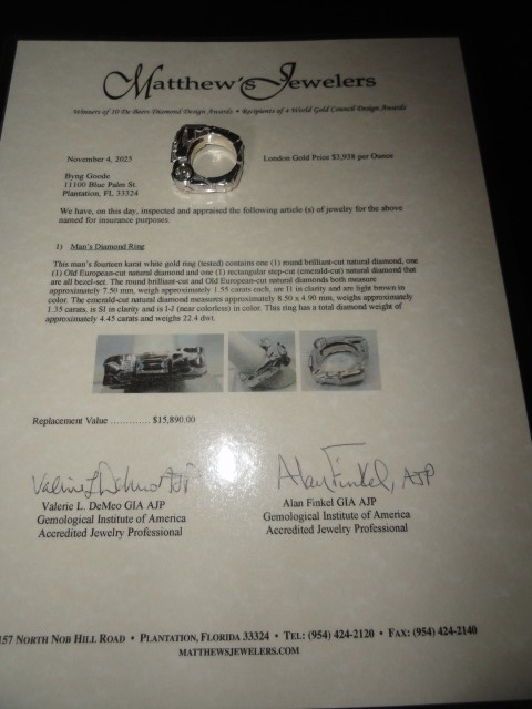 - Custom designed 14K White Gold "Rock" Ring Size 11