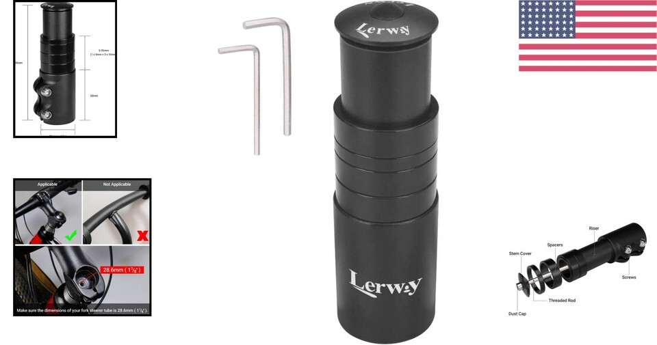 - Customizable Bike Stem Riser Adapter - Height Adjustable, 4 Spacers Included