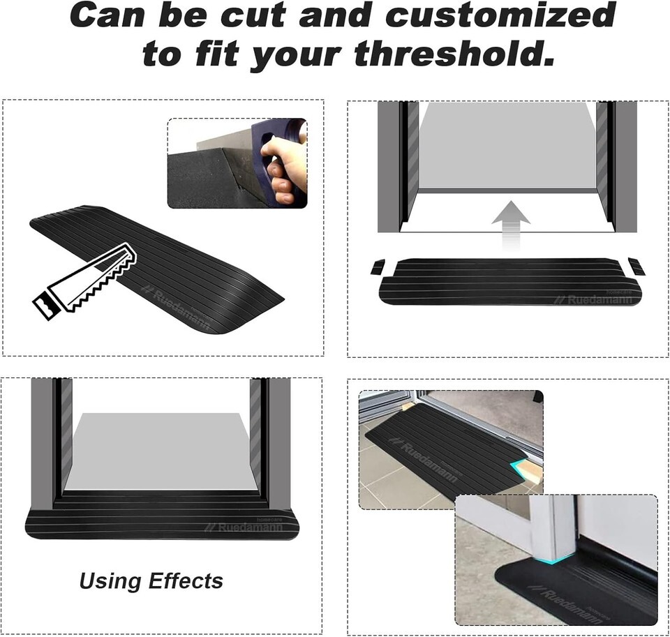 - Customizable Heavy-Duty Rubber Threshold Ramp - 43.5"L x 8.1"W, Anti-Slip Design