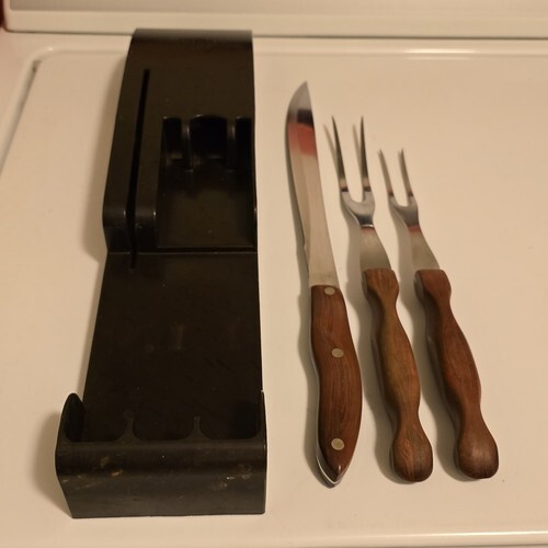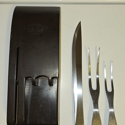 - Cutco No. 23 9" Carving Knife & 1 No. 27 Carving Fork + 1 Unmarked Fork w/ Rack