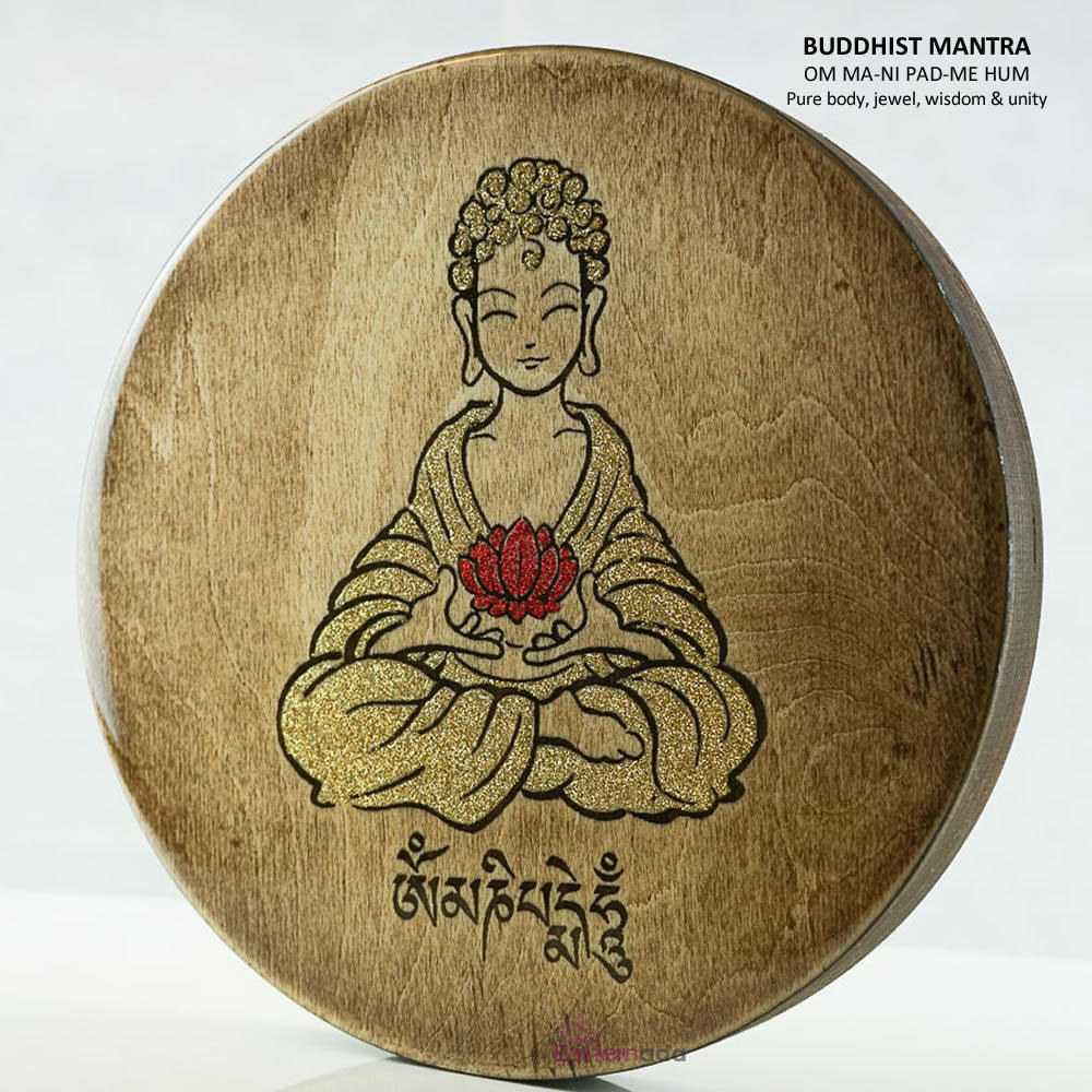OM MANI PADME HUM: The benefits of reciting the Compassion Buddha mantra are infinite, like the limitless sky. Even if you don?t have much intellectual understanding of Dharma, even if the only thing you know is OM MANI PADME HUM, still the happiest life is one lived with an attitude-free of the eight worldly concerns. Reciting the Compassion Buddha mantra just once completely purifies the four defeats of breaking the four root vows of self-liberation and the five uninterrupted negative karmas.