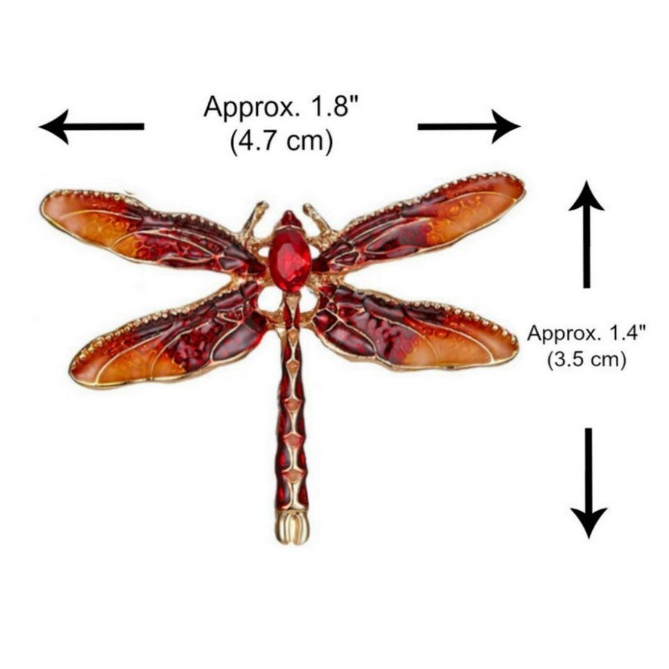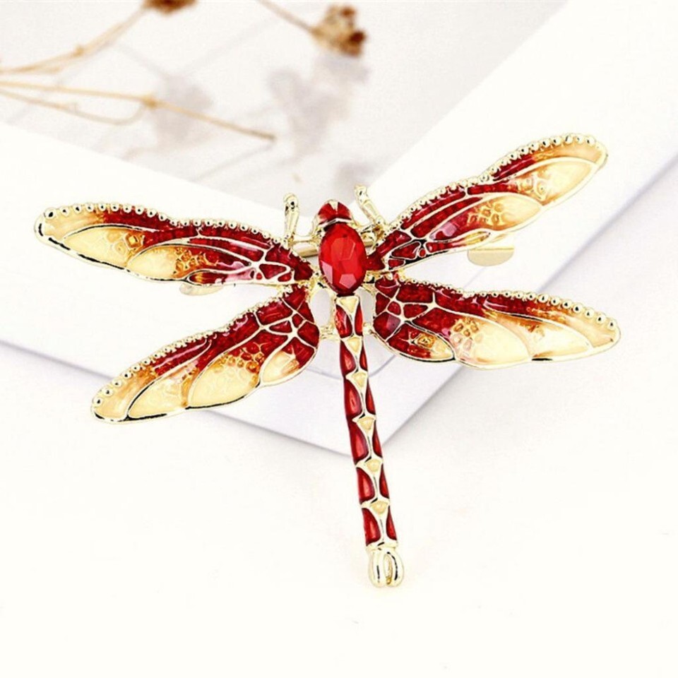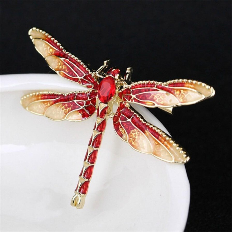 - CUTE DRAGONFLY PIN 1.4" Gold Red Enamel Brooch Rhinestone Flying Insect Bug NEW