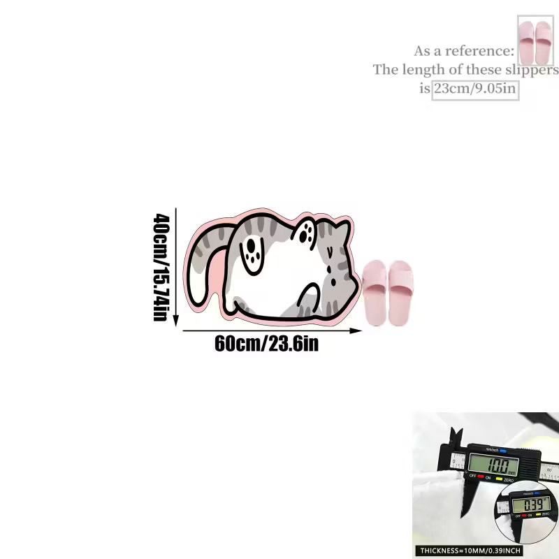 Add a cozy and playful vibe to any space with this Kawaii Cat Floor Mat, featuring an adorable chubby cat illustration in soft pastel tones. Shaped like a lounging cartoon kitty with a pink border, this mat is a must-have for cat lovers, anime fans, and anyone who loves quirky decor.