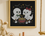 - Cute Halloween Ghost Couple Cross Stitch Pattern – Baby Ghosts Eating Noodles, S