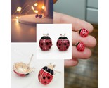 - CUTE LADYBUG EARRINGS 0.5" Small Red Black Enamel Insect Girl's Gift Gold Plate