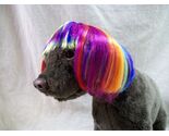 Rainbow Bob Dog Costume Wig. For medium / large breeds of dogs. Recommendations in pictures. Expect Shedding. Has elastic loop with a toggle for adjusting.