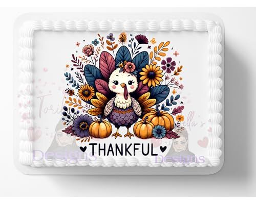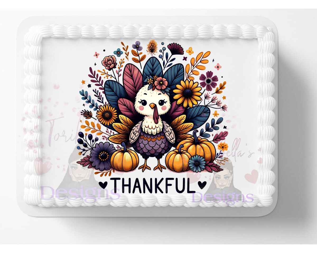 - Cute Turkey Thanksgiving Friendsgiving Themed Edible Image Birthday Cake Topper