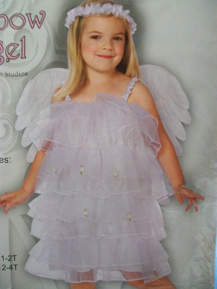 - Cute White Angel Toddler Costume 2-4T Dress Wings Halo Cherub Celestial Heavenly