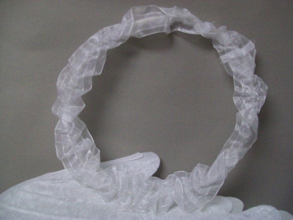 look like feathers. The headband is kind of simple ribbon bunched around a
