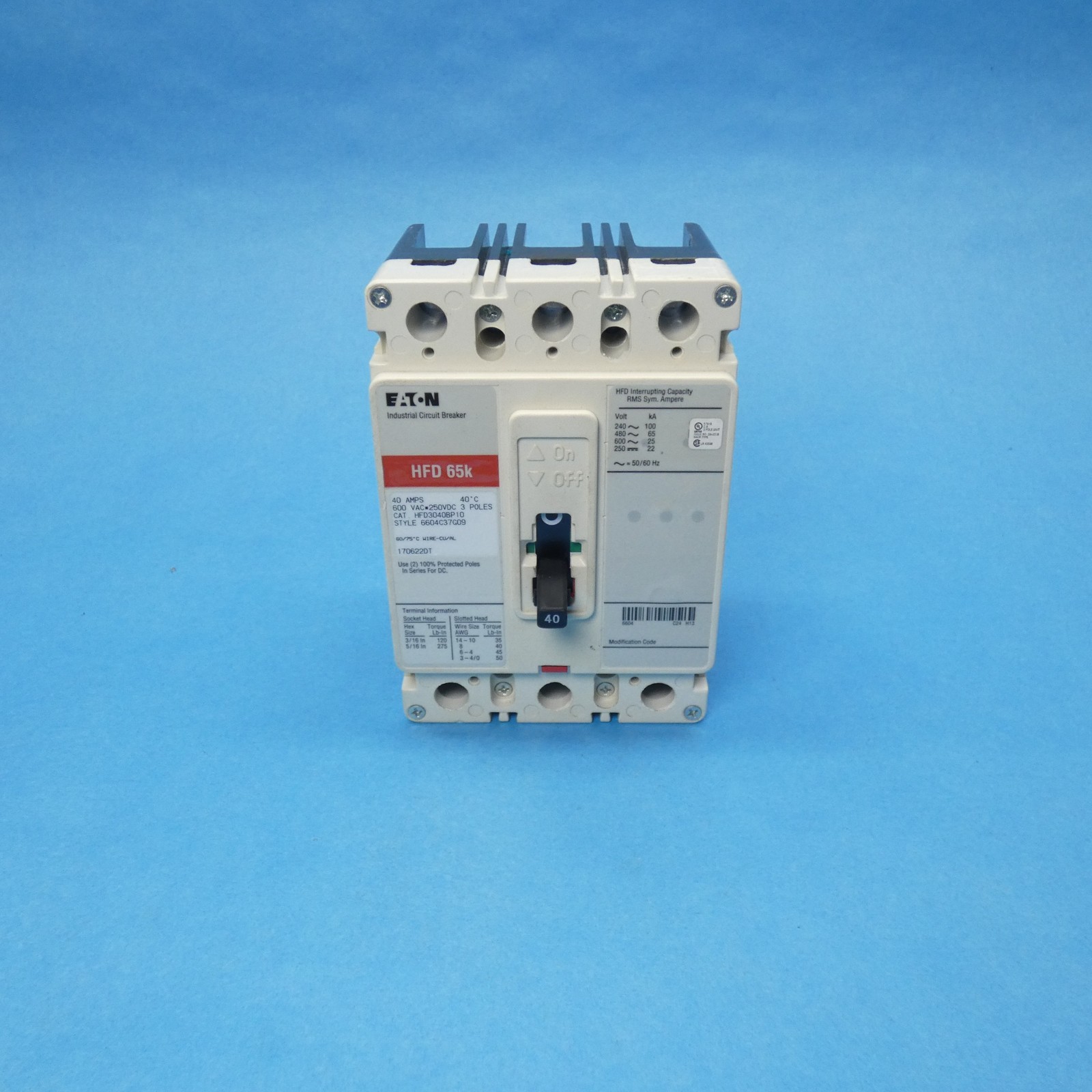 - Cutler Hammer HFD3040 Circuit Breaker 3 Pole 40 Amp 600 VAC/250 VDC New Take Out