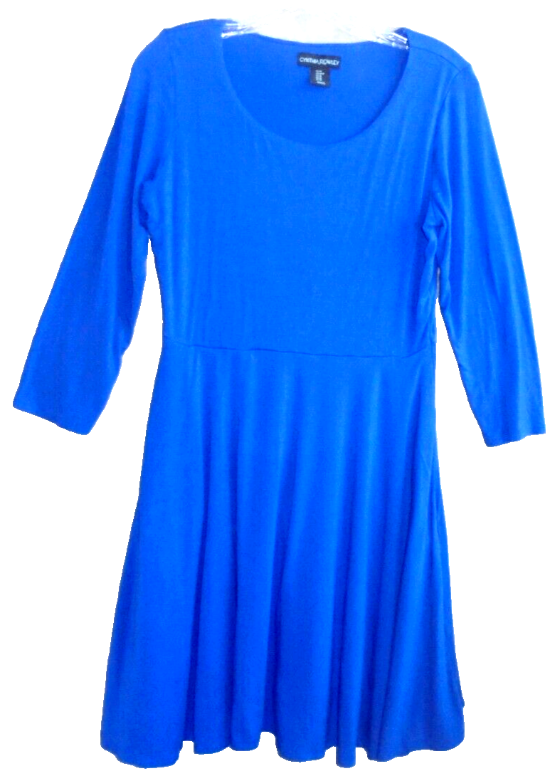 - Cynthia Rowley Dress Womens Medium M Knit Stretch 3/4 Sleeve Blue Fit and Flare