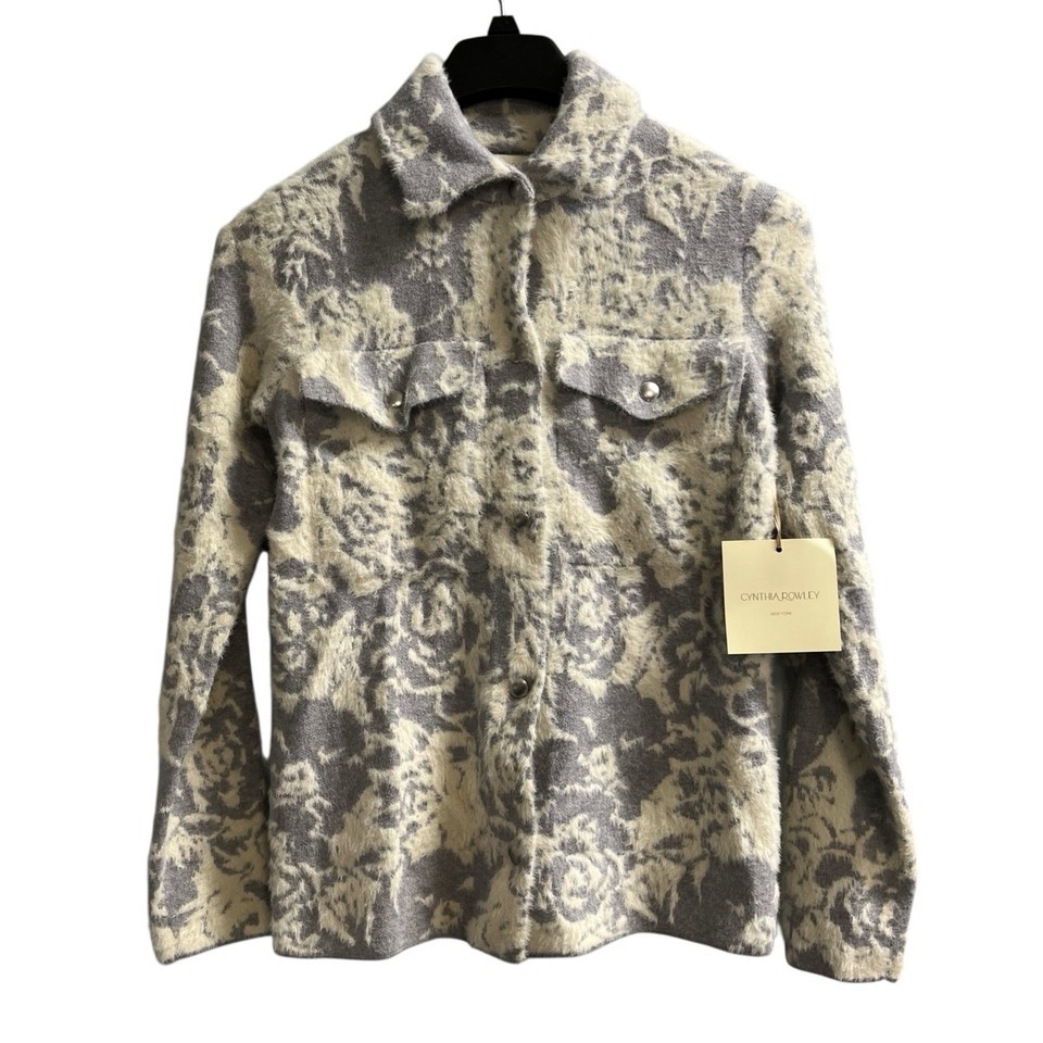 - Cynthia Rowley Sweater XS Blue Floral Fuzzy Knit Snap Front Cardigan Jacket
