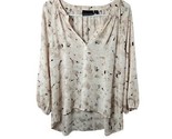 Cynthia Rowley Women's Sheer Blouse V Neck Large Pinks Gathered 3/4 Sleeves