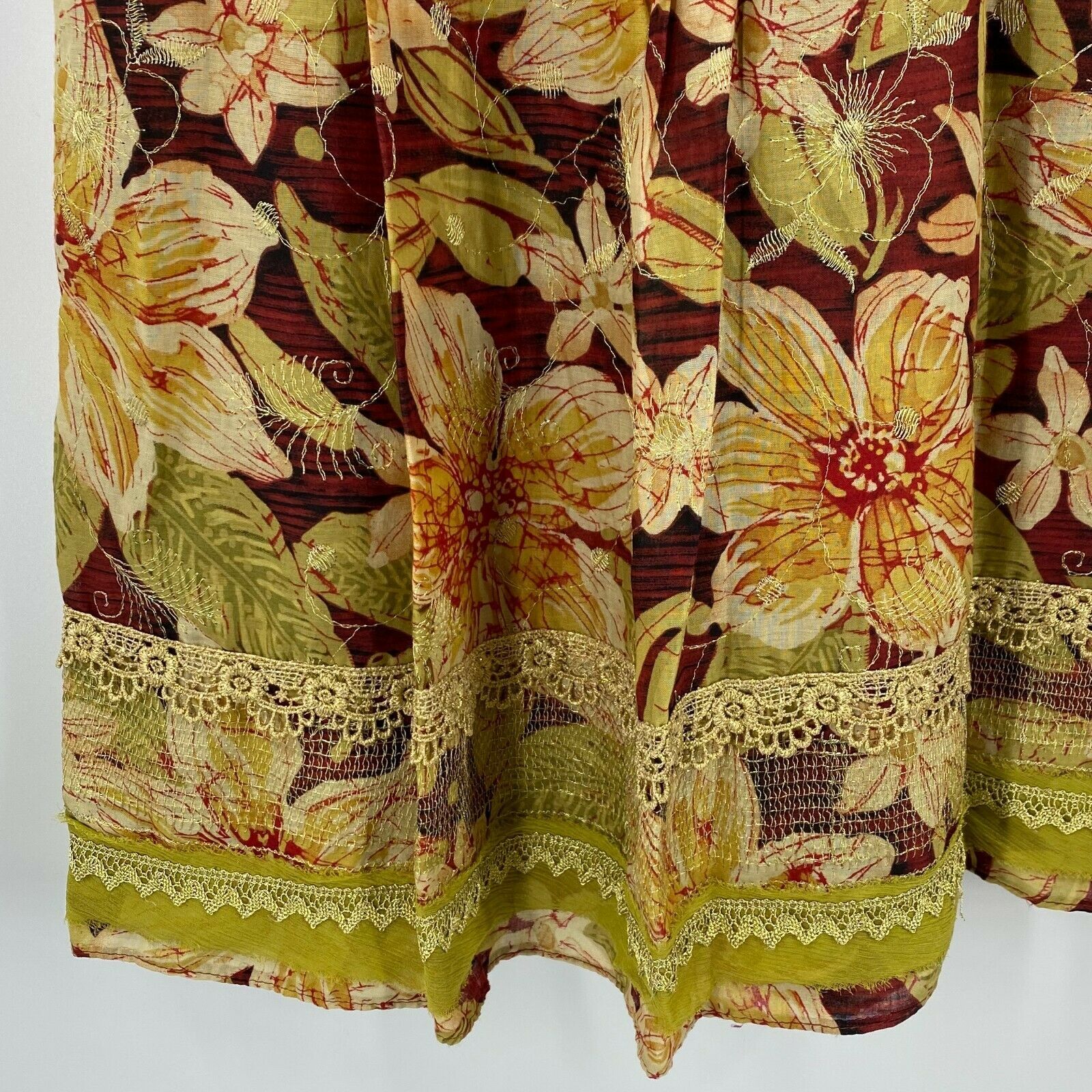 Cynthia Steffe Pleated A Line Skirt Sz 10 Green Red Embroidered Tassel Tie Waist