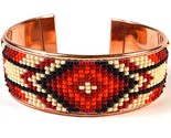 - Czech Beaded Cuff Copper Bracelet w/Southwest Red & White Inspired Pattern!
