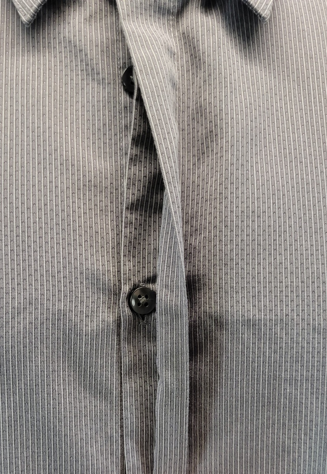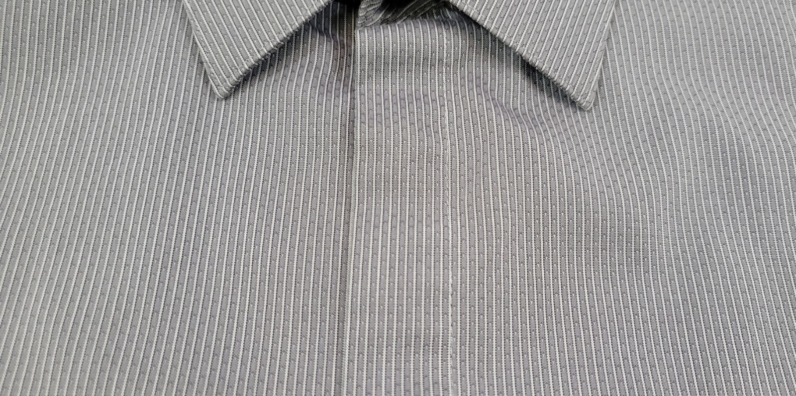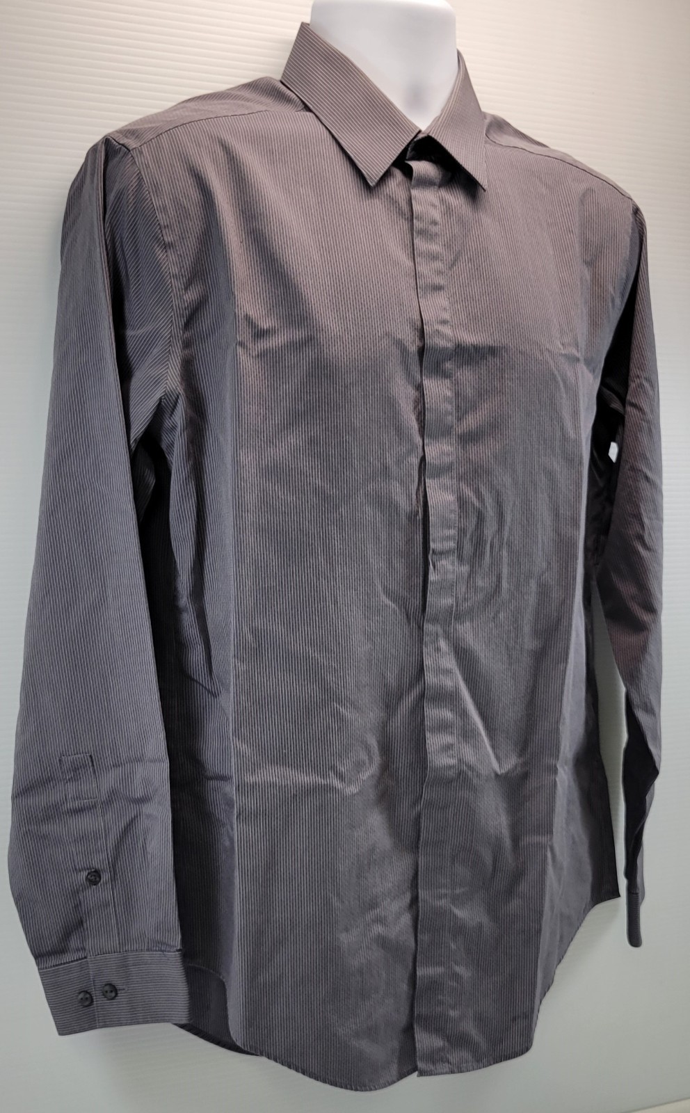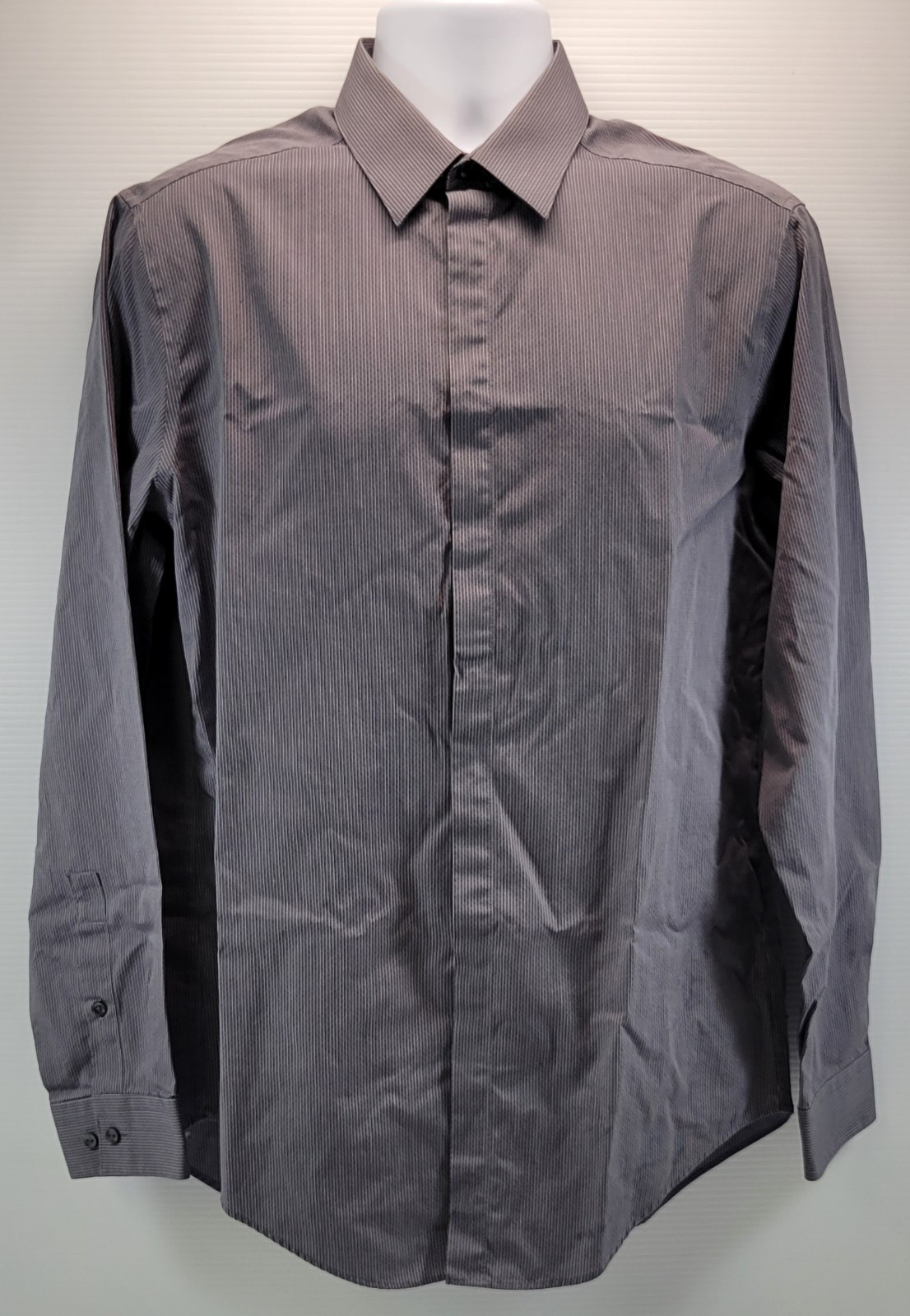 D) Calvin Klein Men Slim Fit Cotton Gray Striped Dress Shirt 16 34/35