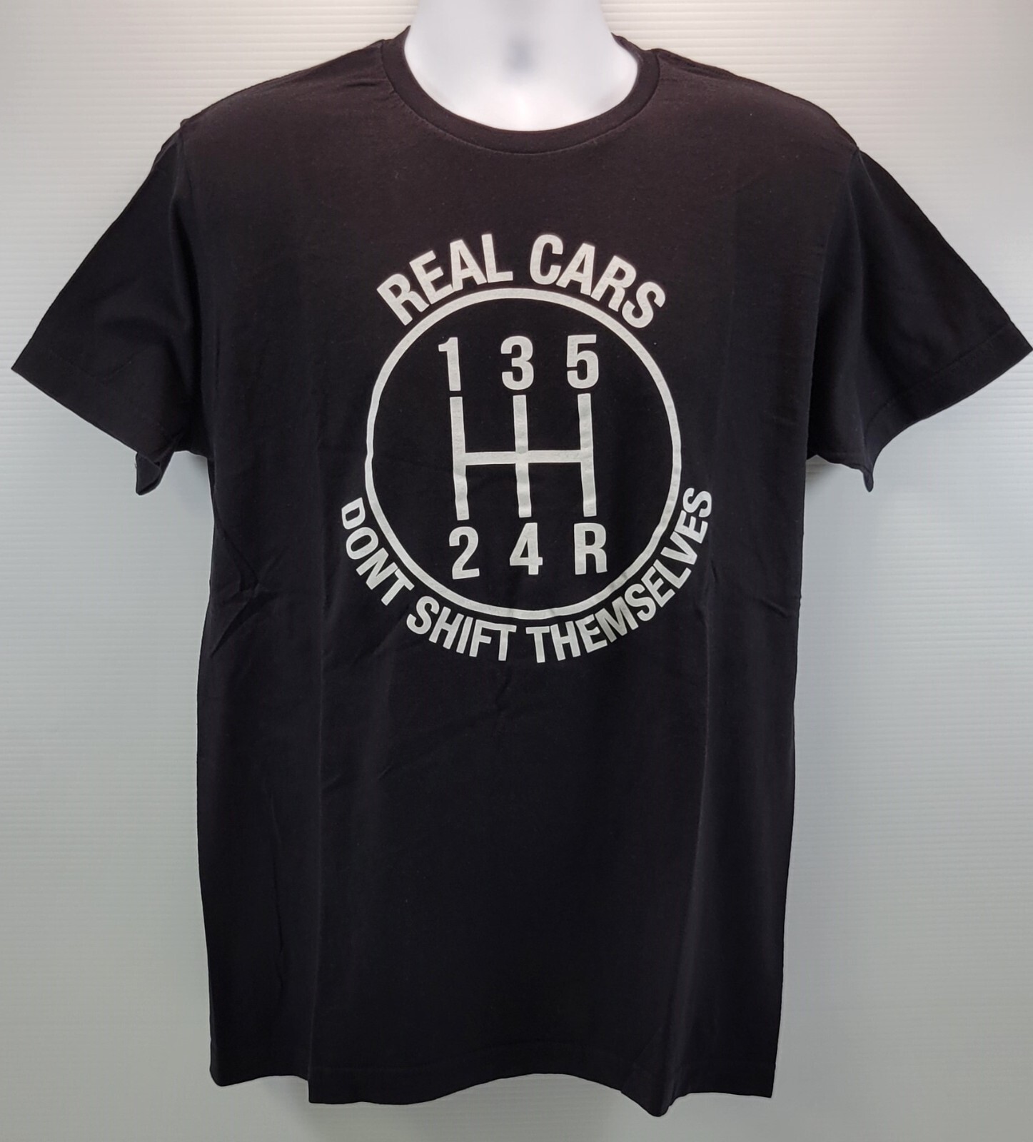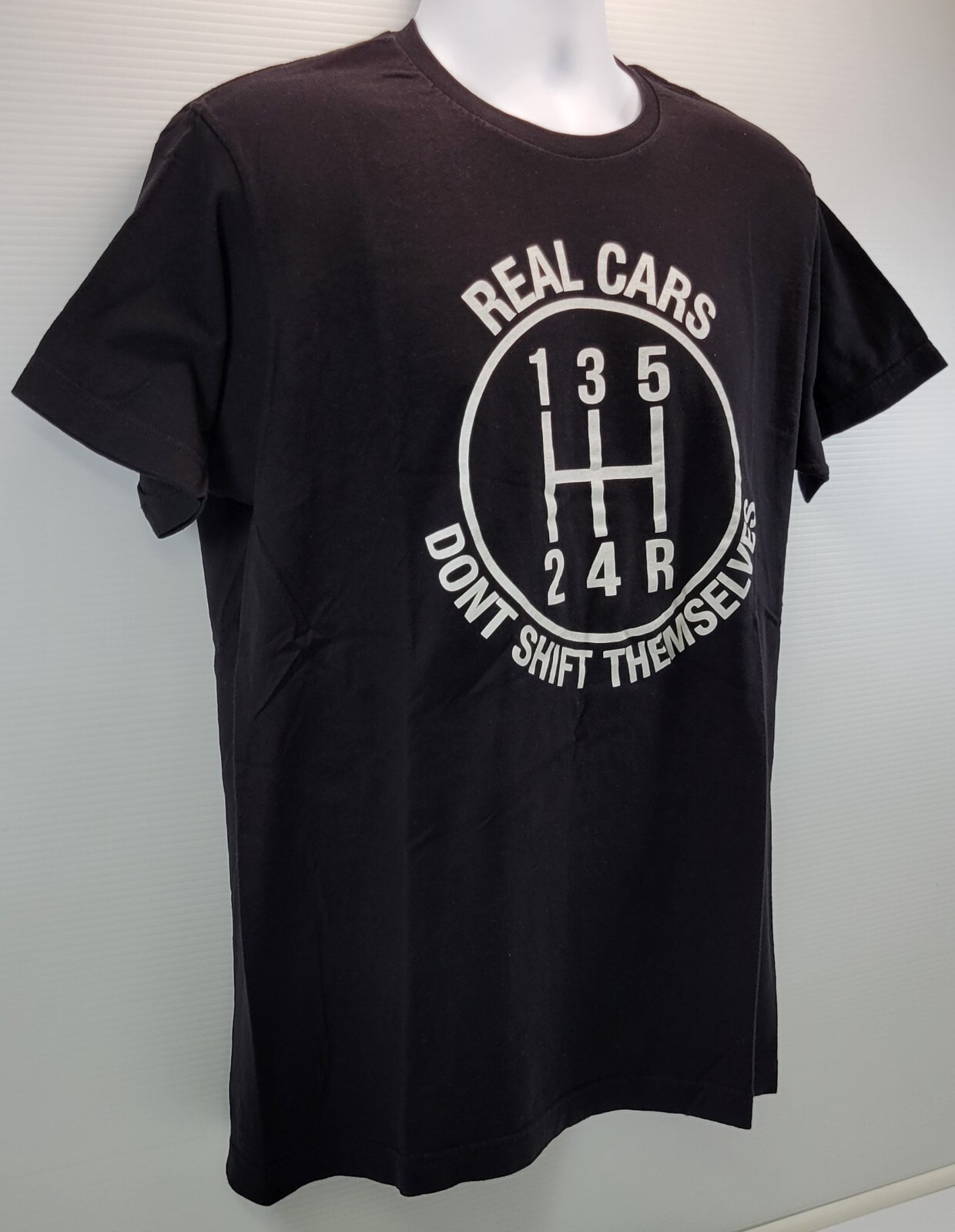 D) Real Cars Don't Shift Themselves Funny Racing Mechanic Manual Car T-Shirt