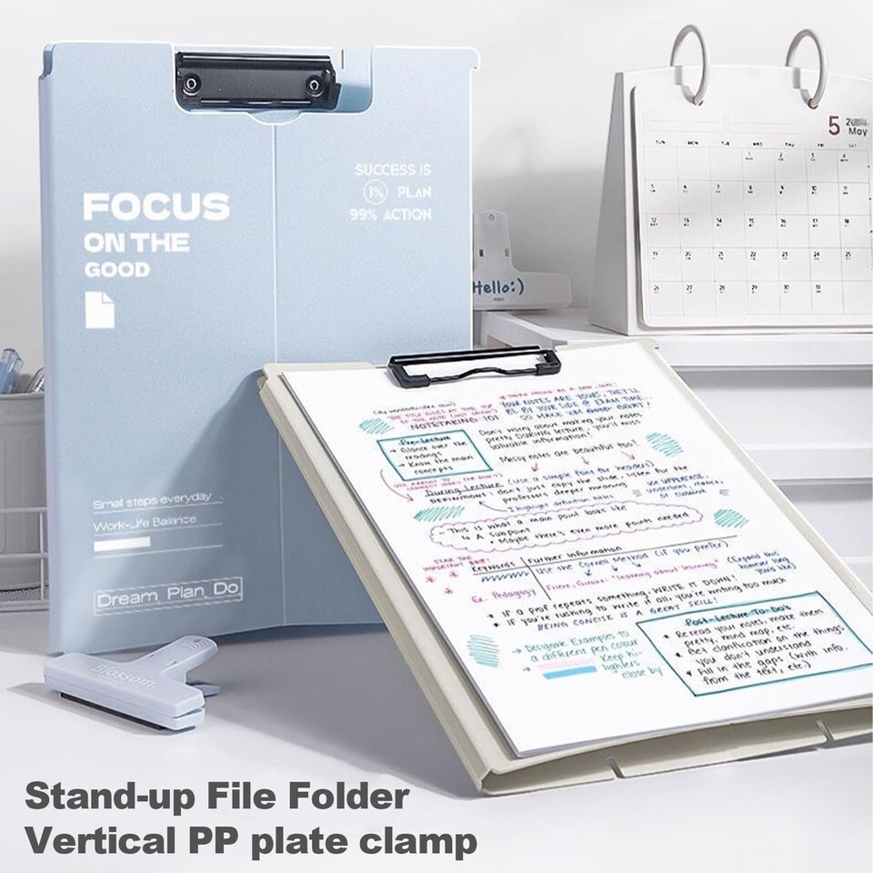 Stand-Up Design: Two-level height adjustment allows the folder to stand upright, providing easy access to documents and writing.