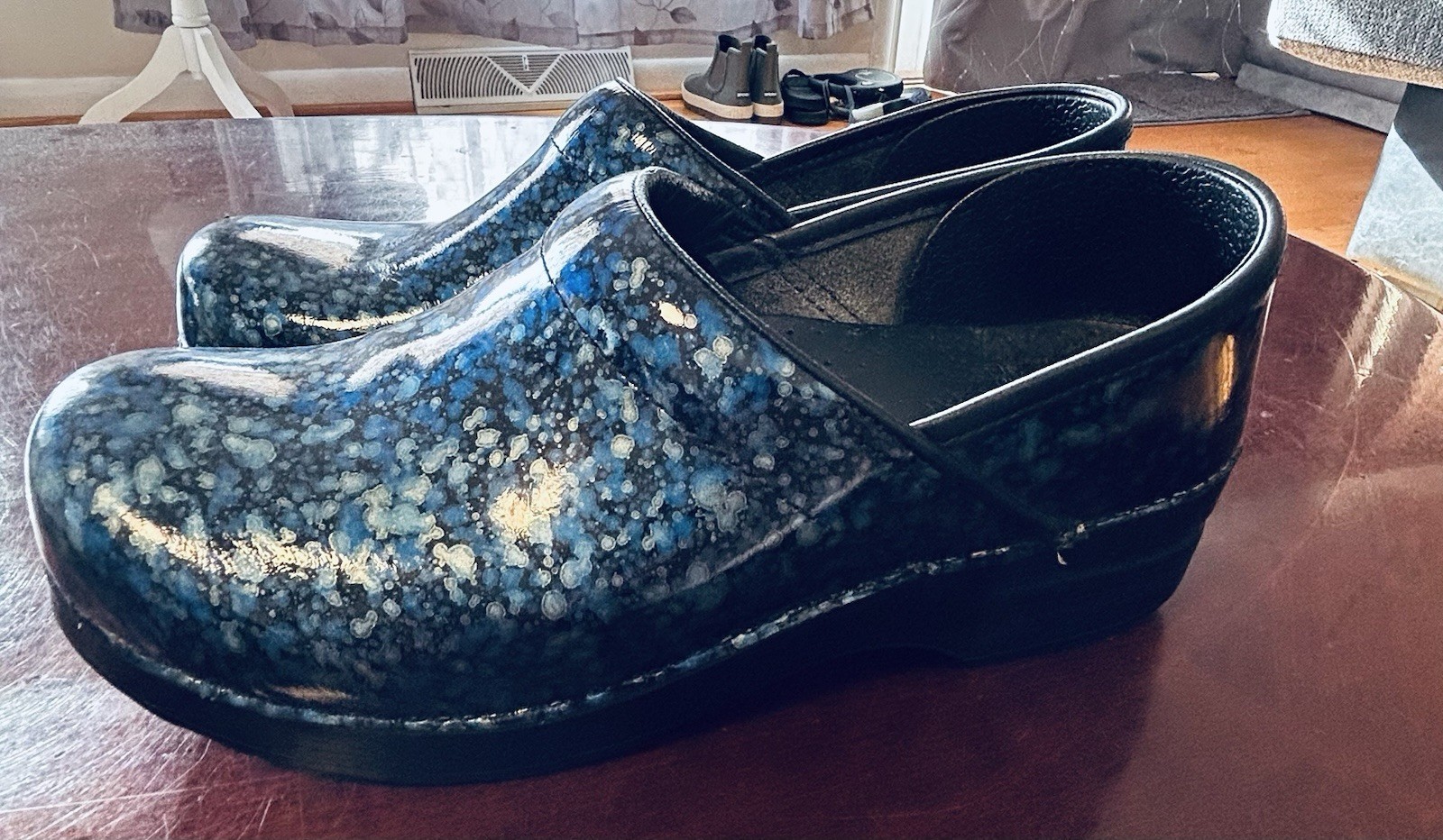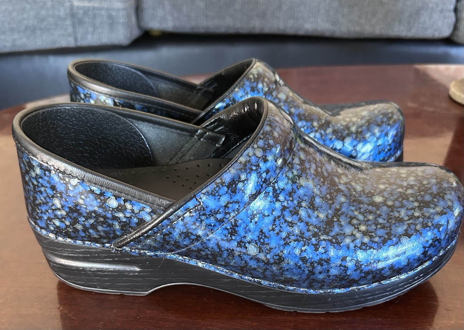 - DANSKO Patent Leather Blue Watercolor Professional Comfort Clogs Size 39EU 8.5US