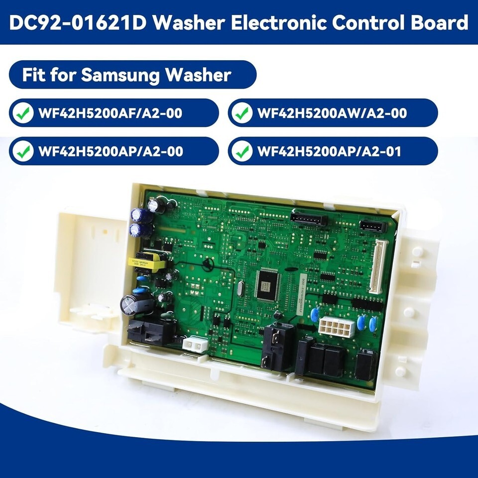 ?Compatible Models?This DC92-01621D washing machine main control board compatible with Samsung washer is suitable for specific models: WF42H5200AF/A2-00,WF42H5200AW/A2-00,WF42H5200AP/A2-00,WF42H5200AP/A2-01.