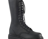 1 1/4" (32mm) Stacked Flat Heel 14-Eyelet Lace-Up Mid Calf Unisex Vegan Boot w/ Back Pull-Tab, Inside Zip Closure