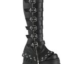 DEMONIA STOMP-223 Women's Black Wedge Platform Studs Buckles Black Knee Boots 8