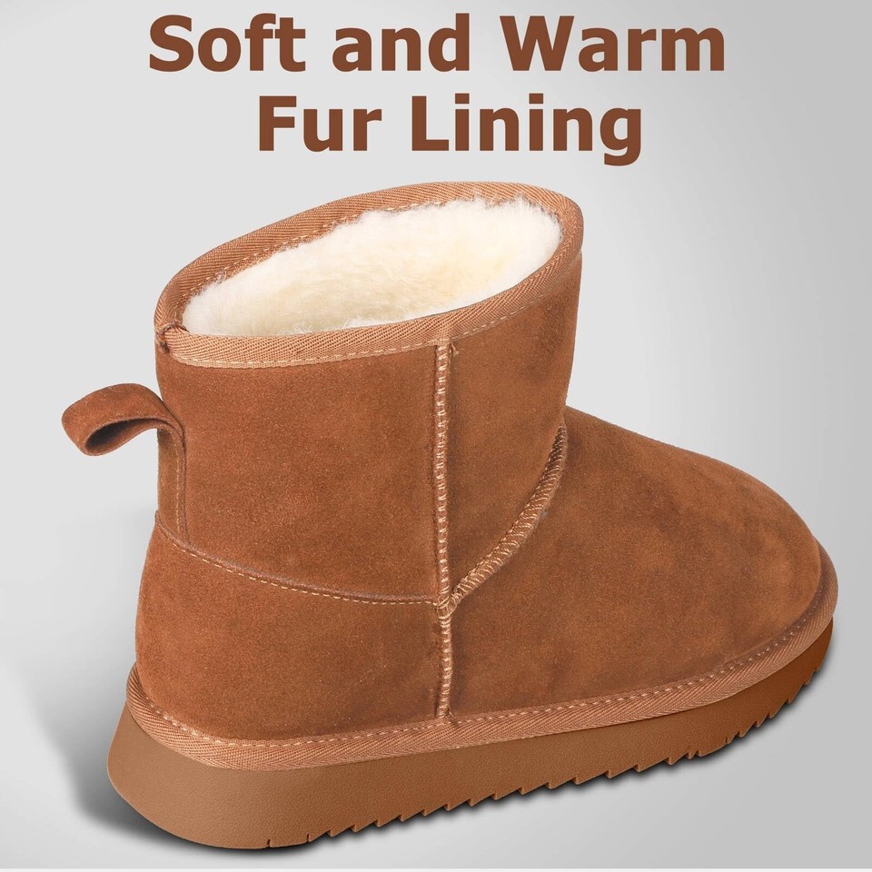 - DIRDENI Women's Mini Snow Boots Ankle Fur Lined Non-slip Brown Size 7