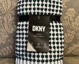 DKNY Polka Dot Gingham Check Pine Green White Hand Towels Set 2 ~New ~