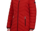 - DKNY Womens Coat Red Puffer Walker Stretch Quilted High-Collar Logo