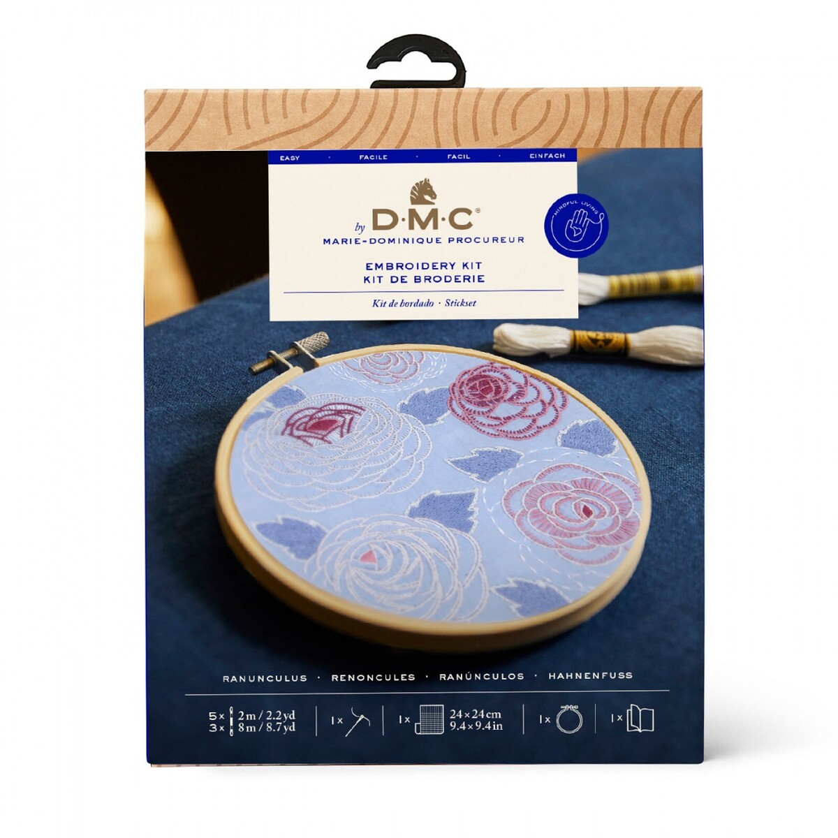 A modern composition of the popular bowl-shaped flowers. Marie-Dominique Procureur has chosen to stitch these blooms on a blue base giving them a fresh modern look. You can use the hoop included in the kit to display your completed needlework. The kit contains thread, fabric and all the accessories you will need as well as full instructions. Package Contains: 5 x Six-Strand Embroidery Floss 2 m / 2.2 yd skeins - 100 percent cotton 3 x Six-Strand Embroidery Floss 8 m / 8.7 yd skeins - 100 percent cotton 1 x printed fabric 24 x 24 cm / 9.4 x 9.4 in - 100 percent cotton 1 x hoop 14.5 cm / 5.7 in 1 x embroidery needle 1 x instructions EN / FR / SP / DE / IT / PT / NL / JA. Stitches Used: Stem Stitch, Straight Stitch, Long and Short Filling Stitch, Chain Stitch, Running Stitch, Satin Stitc