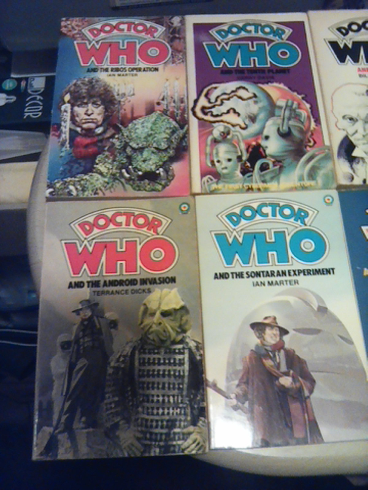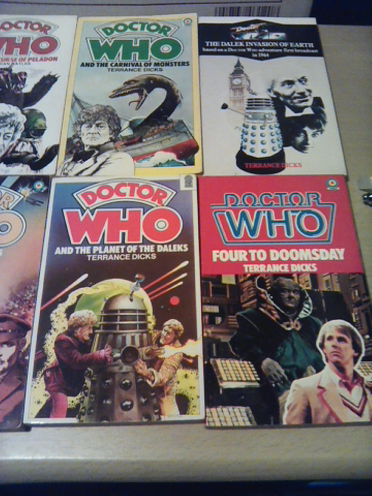 12 paperbacks all in very good condition or better, several are like new. Mostly reprints from the 80s. "Four To Doomsday" is an excellent 1st edition". "Dalek Invasion Of Earth" is obviously a reprint from much later.