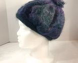 Dark purple green plaid. Mohair Wool Blend. Small pom pom on top.