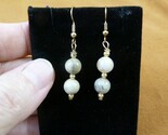 (internal #DP1-28-13) This is a beautiful pair of Genuine Dinosaur poop dangle earrings made with two 8mm beads and gold alloy bead accents, on gold alloy hypoallergenic French wires.
