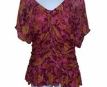 DR2 Pink Purple Floral Puff Sleeve Peplum Blouse Women?s Size XL NEW