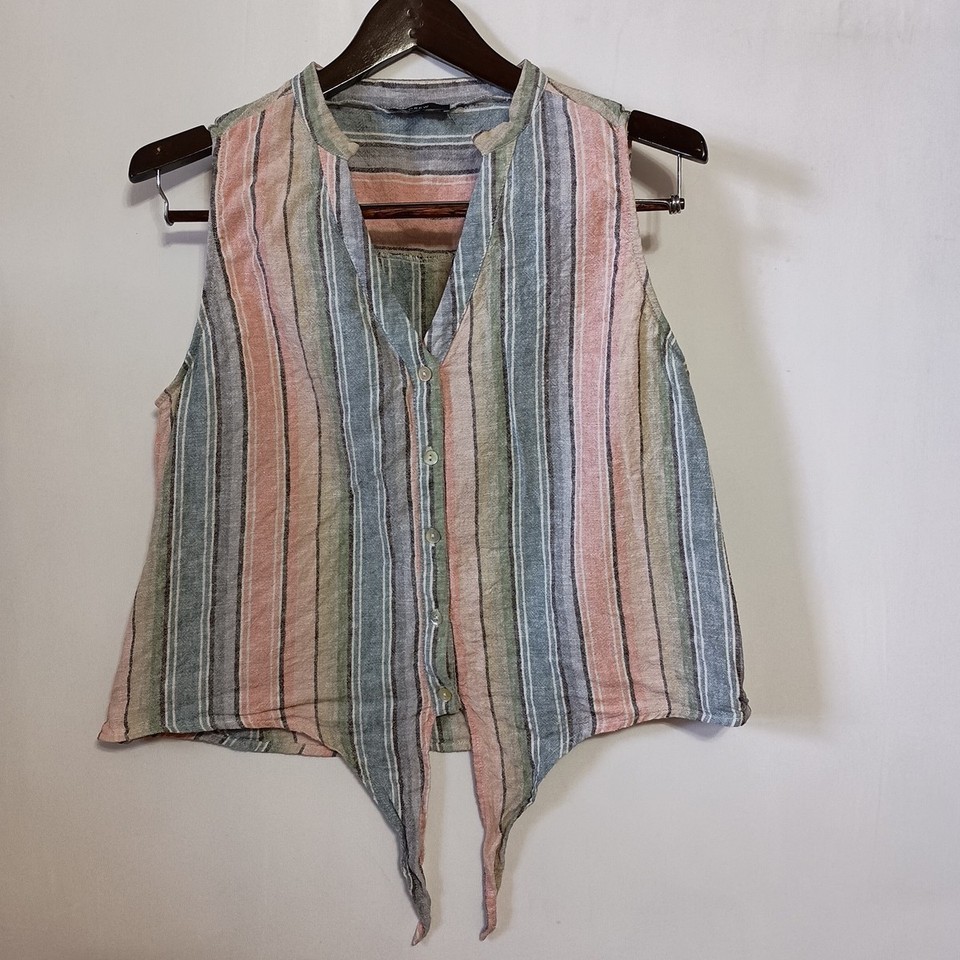 - DREW Sleeveless Striped Button Up Tie Front Blouse Top Striped Multicolor Large
