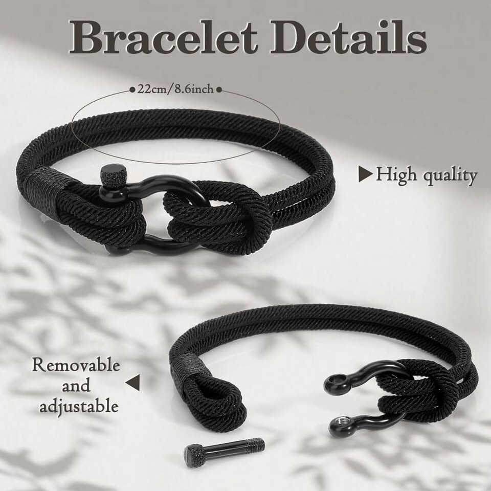 Safe Material All our bracelets are made of high quality black rope with horseshoe clasp, safe ingredients, good material, light weight, but looks texture.