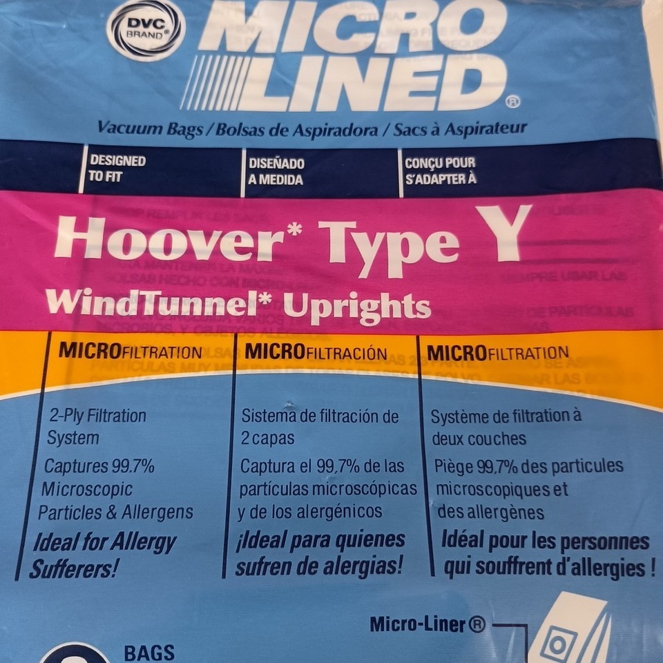 - DVC Sweeper Bags 3pk For Hoover Style Type Y Wind Tunnel Upright Vacuum Cleaner
