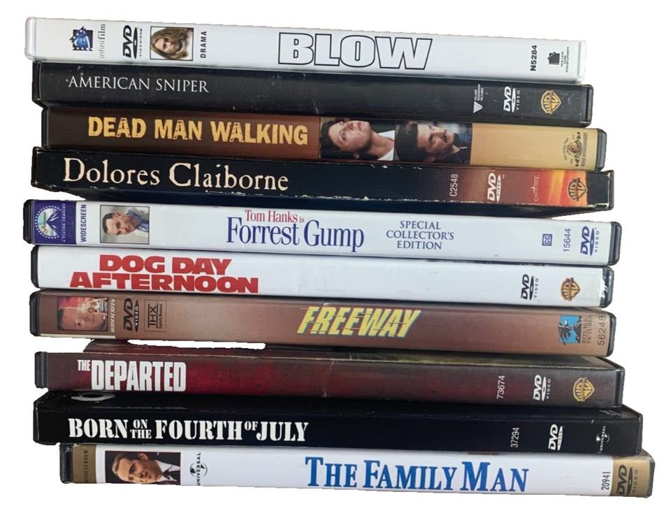 DVD Movie 10 Piece Lot: Drema, Pacino, Nicolas Cage, Tom Cruise, Nicholson