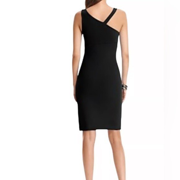 DVF Diane Von Furstenberg Nomie Knit Stretch Asymmetric Dress in Blur Size 10 - 71 viscose 23 polyamide 6 Elastane - asymmetrical neckline in a modest knee-length silhouette. Asymmetric neckline.Wide left shoulder strap; thin right.Asymmetric banded waist.Pencil skirt, subtle ruching on one side