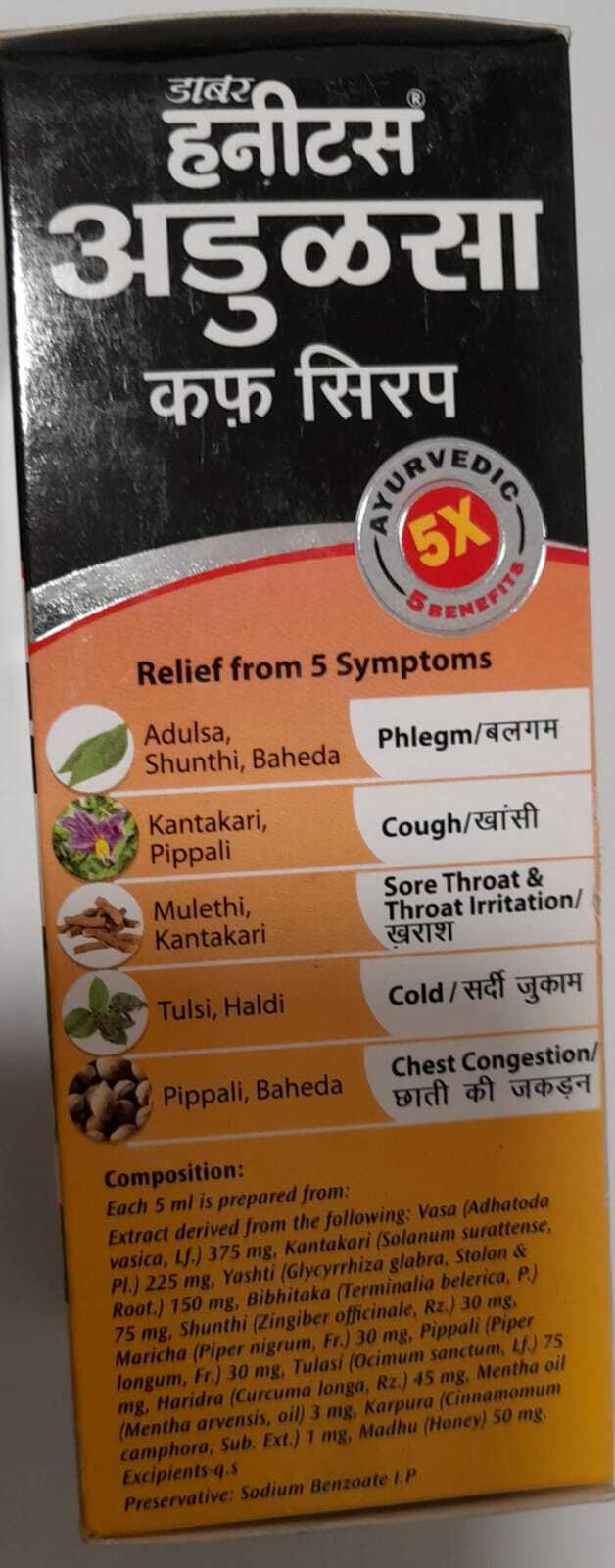 - Dabur Honitus Adulsa Cough Syrup is a unique combination to get quick relief aga