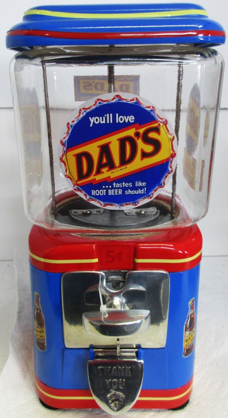 - Dad's Dime Round Gumball Dispenser Dad's Root Beer Theme Circa 1950's