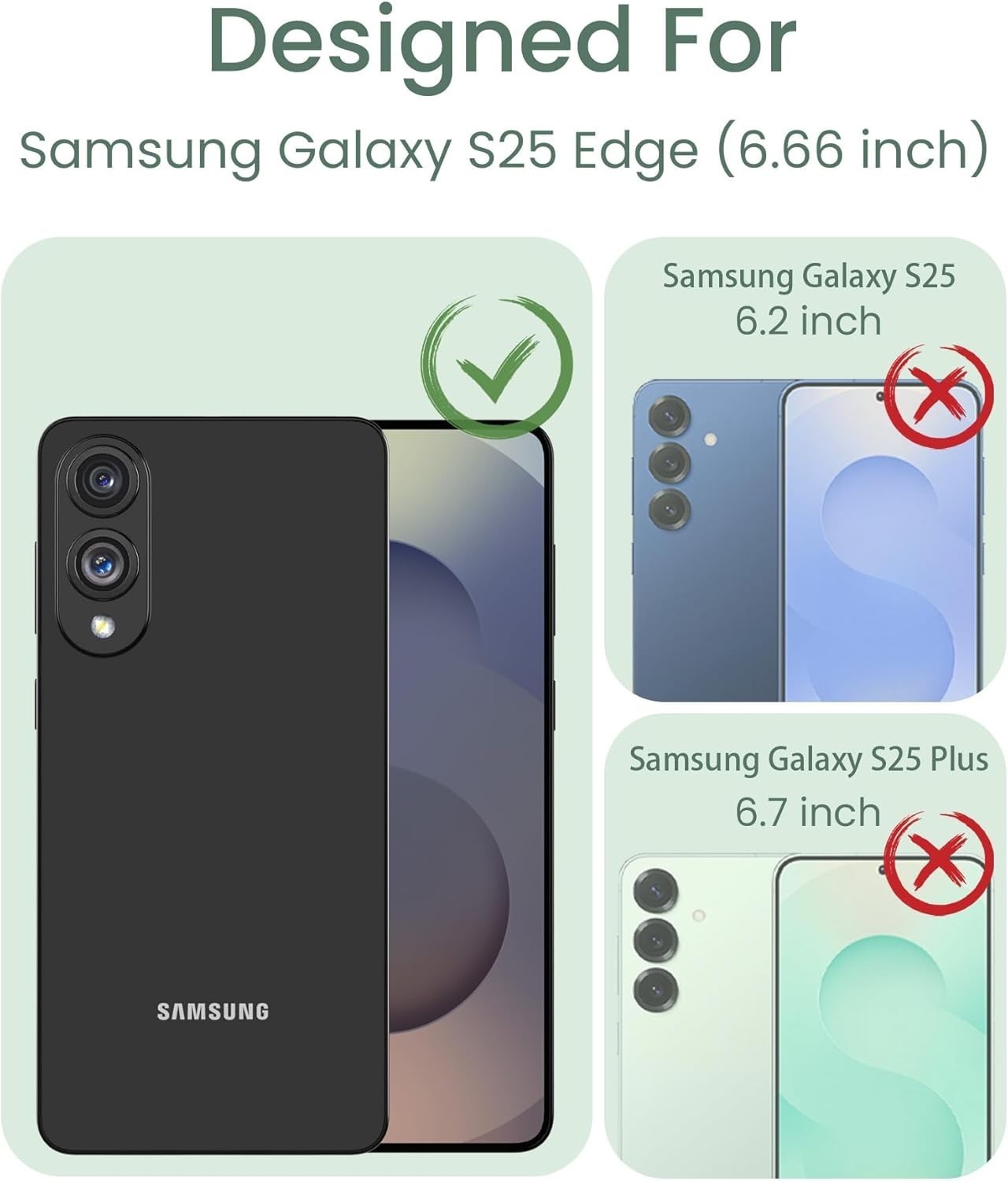 Designed for Samsung Galaxy S25 Edge 6.7 inch (2025 release) Only; 2 Pack Tempered Glass Screen Protector included. Please check your phone model before placing an order.