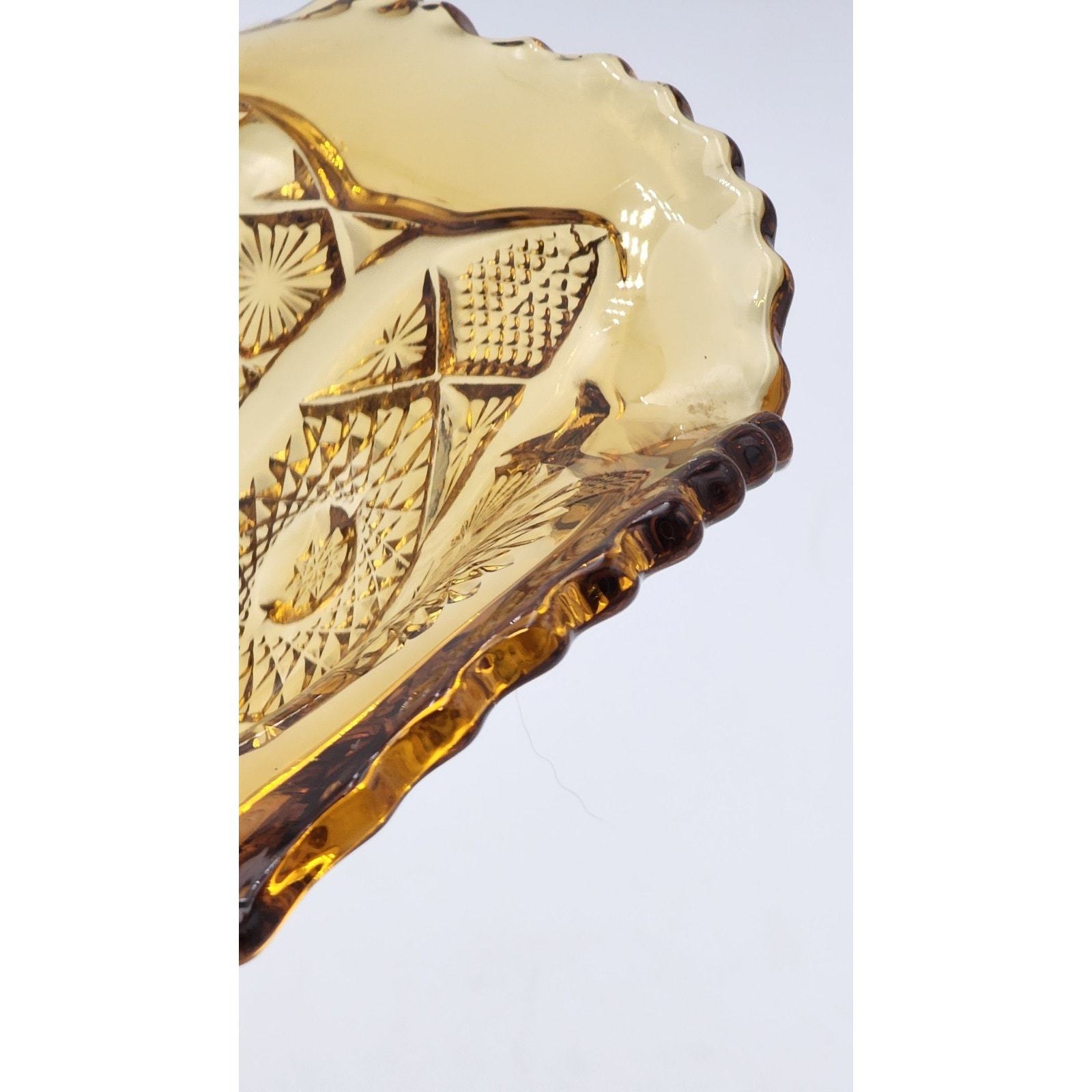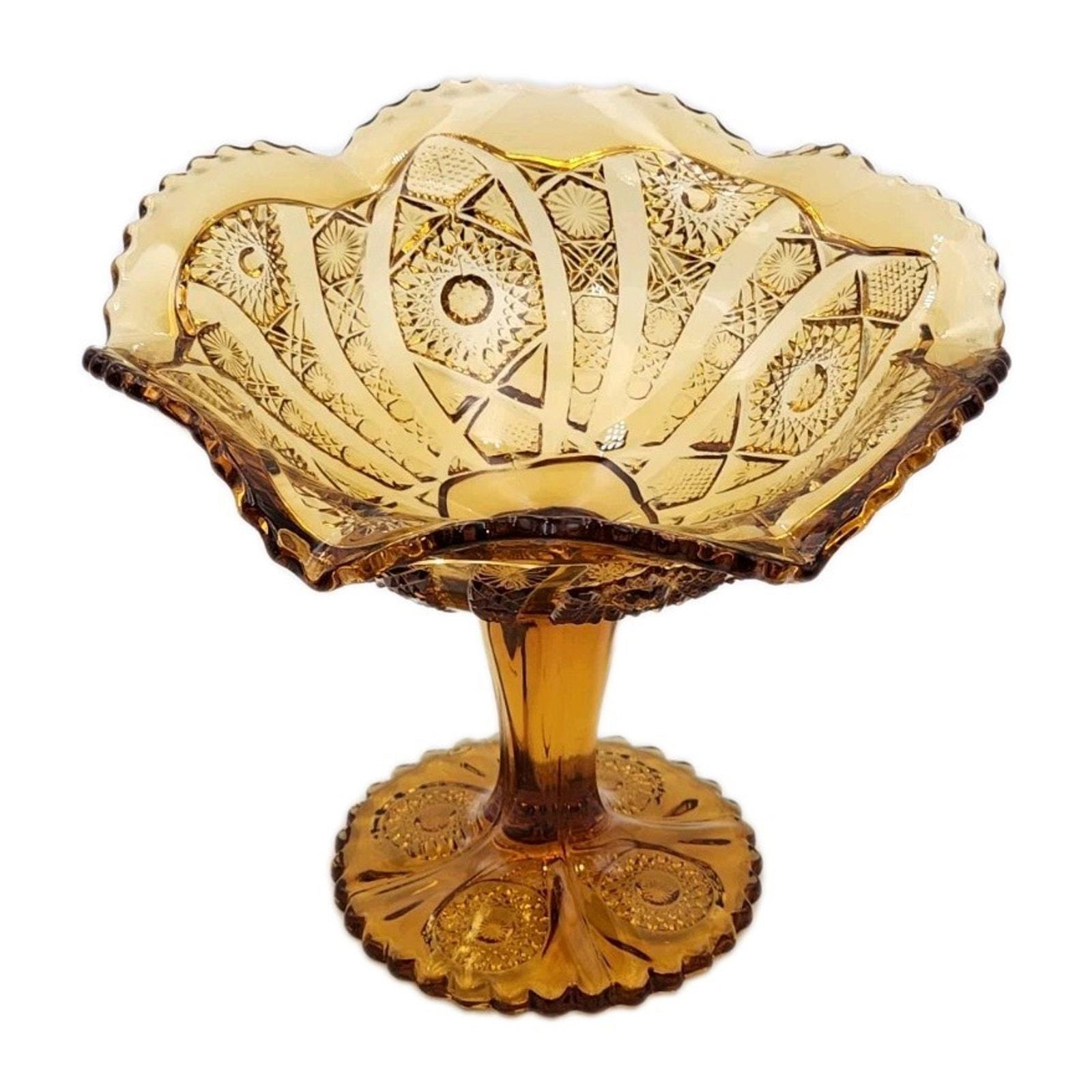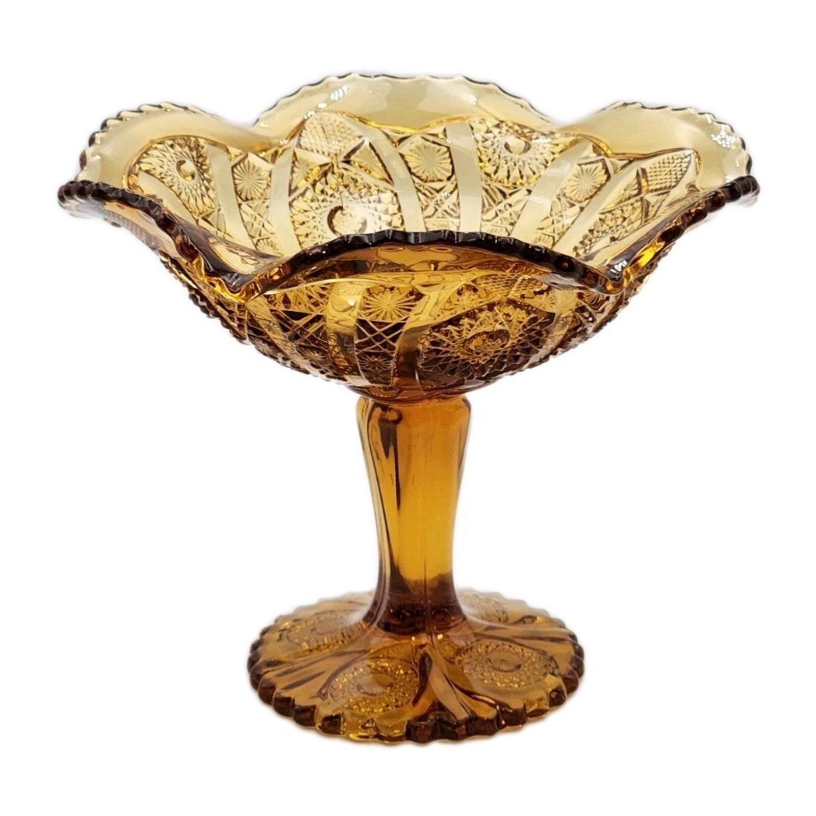 - Daisy & Button Crimped Tall Compote Amber Imperial Glass Ohio 7" Tall VTG 1970's