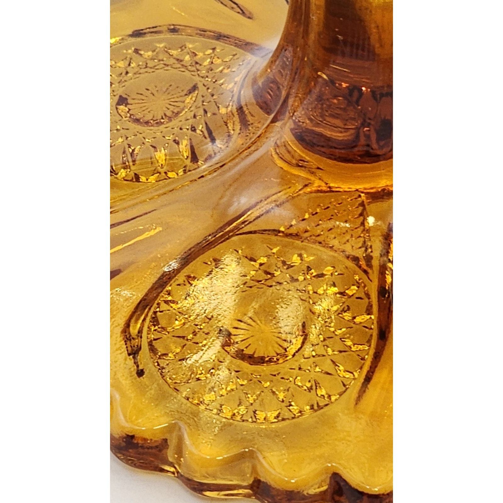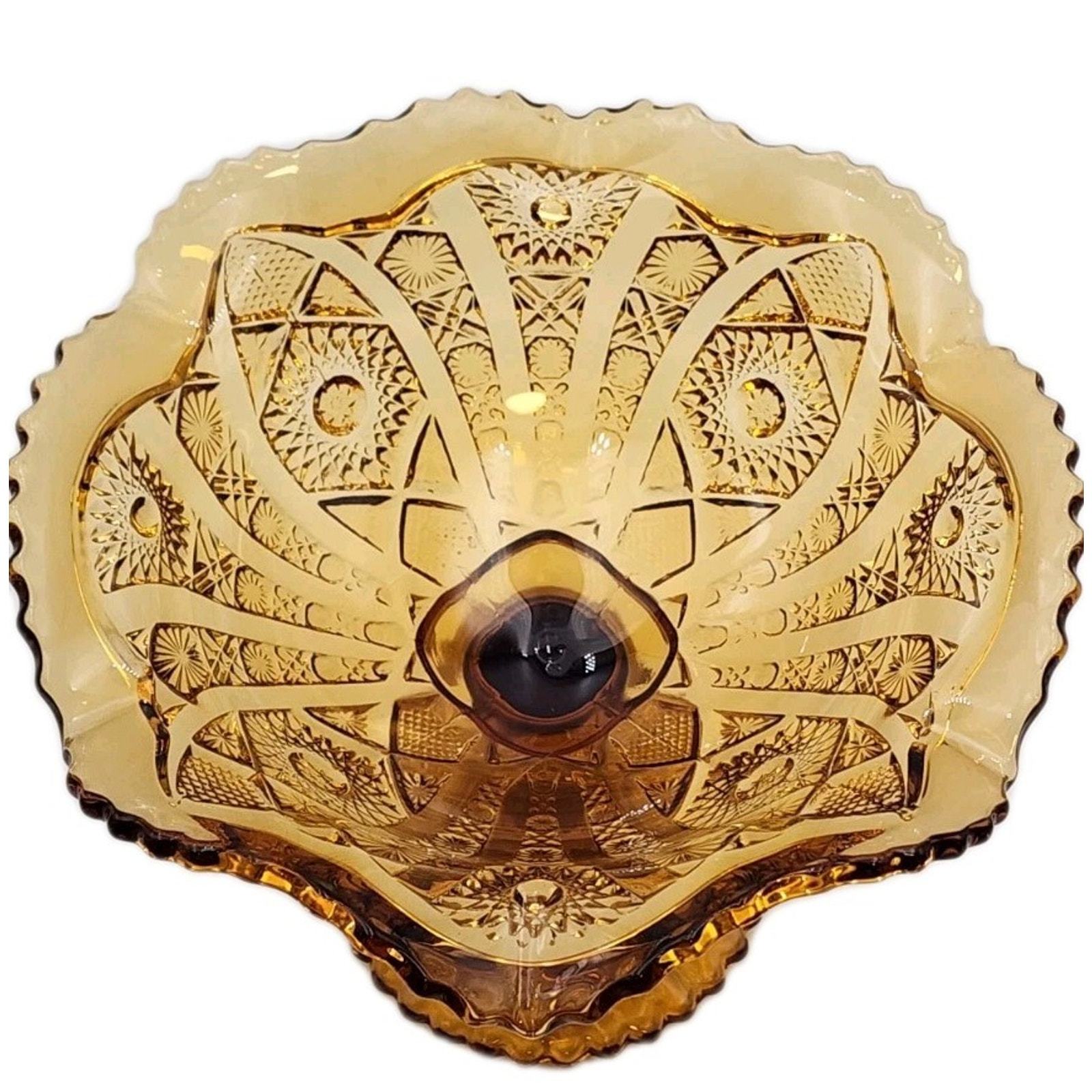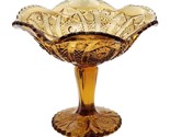 Daisy & Button Crimped Tall Compote Amber Imperial Glass Ohio 7" Tall VTG 1970's